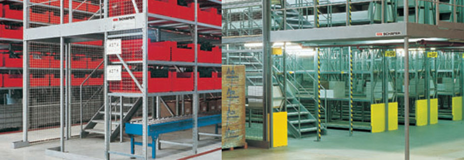 Sunt posibile instalaţiile pe mai multe rânduri şi mezaninele sprijinite pe rafturi